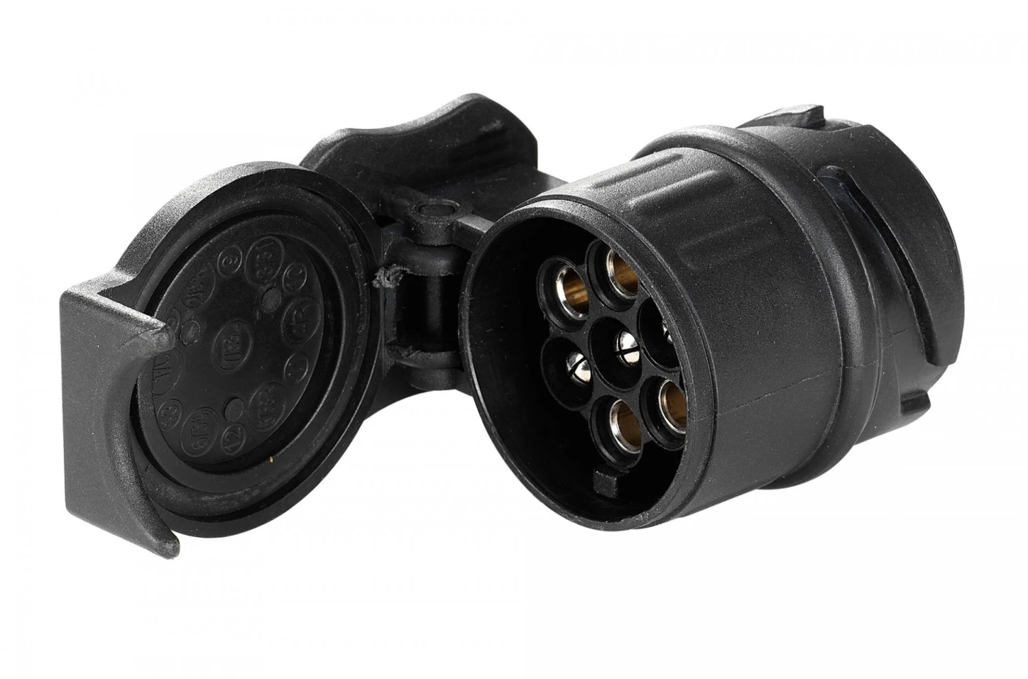 The Thule 9907 electrics adapter enables a tow ball mounted bike carrier that includes a 7 pin plug, to be fitted to a vehicle that is equipped with a 13 pin socket on the car’s electrics. It incorporates a heavy-duty waterproof cover to protect the electrical terminals when not connected.