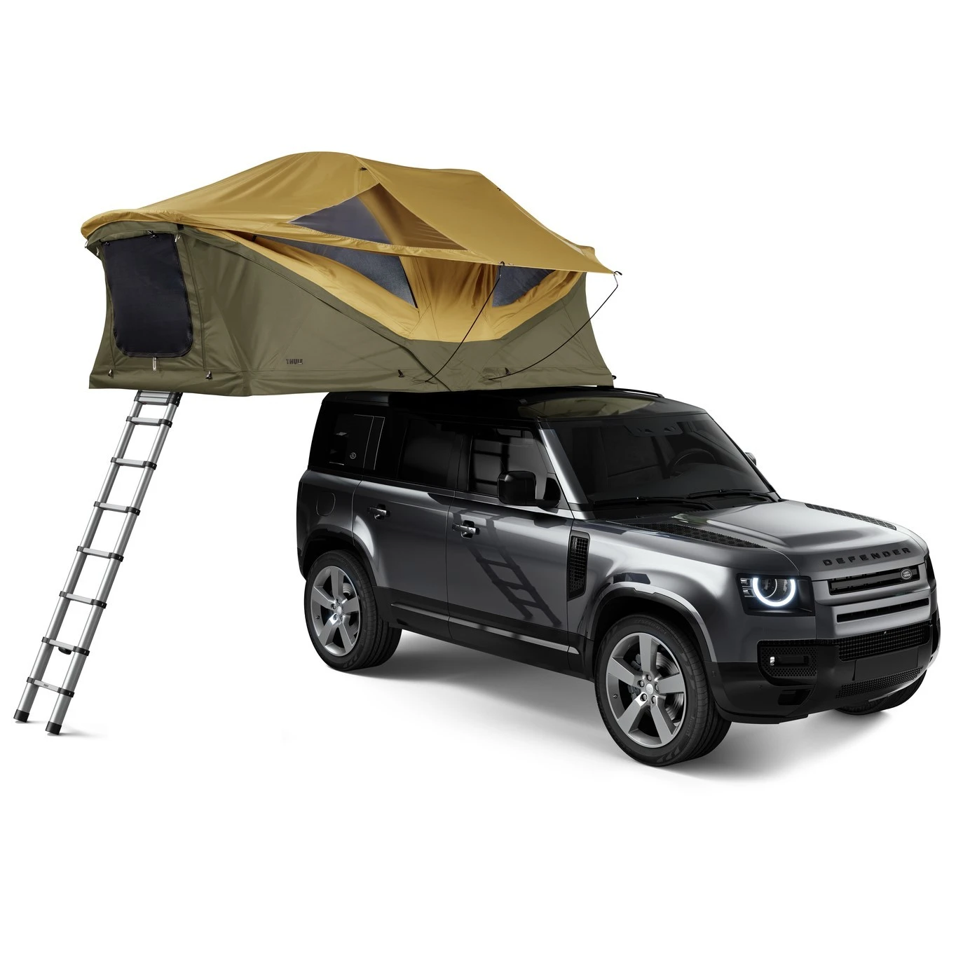On top of the world, on the top of your car. Thule Approach is a tent that makes adventure travel easier, more comfortable, and more fun. The car top tent maximizes interior space, giving you a great place to hang out in, as well as a comfortable night’s sleep. Made for rugged adventures off the beaten path, this rooftop tent is equally great for local explorations or weekend getaways with family and friends. Transform your vehicle into a home away from home and live the van-life experience no matter what you drive – SUV, saloon car or hatchback.