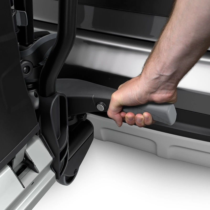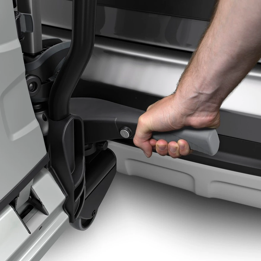 The 934 EasyFold XT could easily be described as the perfect tow ball mounted bike carrier. It is so simple to use and operate. The folding action makes it much easier to fit on a tow bar since you can just lift it in place folded and then unfold as you tighten it. There are even a pair of integrated transport wheels and an ergonomic handle for easy manoeuvring. When fitted to the tow ball access to the boot and tailgate is virtually unrestricted since the easy to operate tilt action allows plenty of space between the carrier and the vehicle.