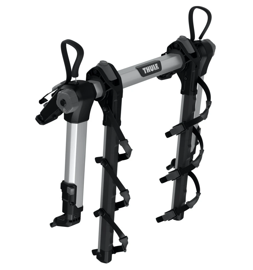 The Thule 995 OutWay Hanging 3 is a three bike rear mounted bike carrier that fits straight to the boot or tailgate of a multitude of cars, hatchbacks and SUV etc., including many that have rear door spoilers.