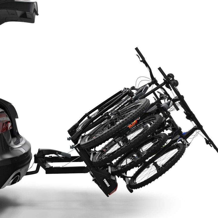 - Carrys up to 4 bikes while using the Thule VeloSpace XT Bike Adapter